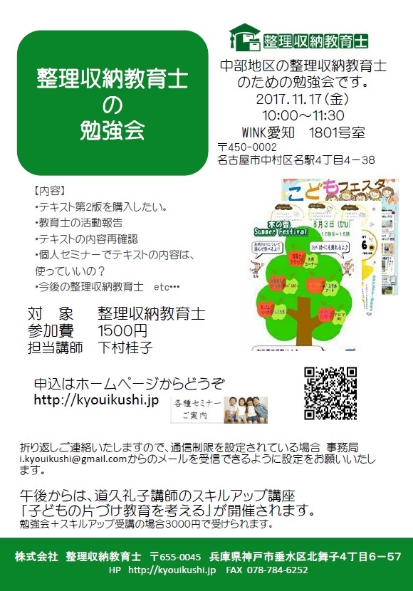 【愛知】フォローアップ勉強会&一般講座開催(11月17日)