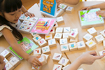3つの家具の絵が書かれた箱と、45のモノが描かれた積み木からなる玩具を使用するお片づけ遊びです。この玩具を使った遊びを通じて、子どもたちは整理収納の基本となる「適正量」や「グルーピング」などを学ぶことができます。