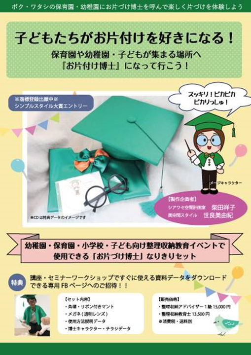 お片づけ博士になって全国の子ども達に「お片付け=楽しい」を伝えにいきましょう!